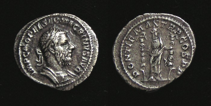 #8861: SILVER Denarius - 217 AD, Macrinus - Usurper to Throne Murdered Caracalla !!! RARE EMPEROR Historical Context: This