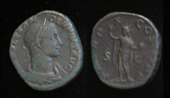#10229: Bronze Sestertius - 225 to 235 AD, Severus Alexander Providentia (Roman "Foresight") Historical Context: See above "Historical Context." Obv: Severus Alexander SOLD $89.95 plus shipping