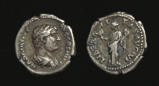 SILVER Denarius with Virtus (Roman "Manliness") Historical Context: See above "Historical Context." Obv: Hadrian BUY NOW $69.95 plus shipping