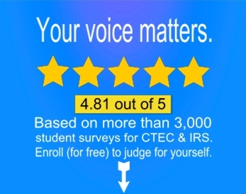 Our online service is used and trusted by thousands of income tax preparers each year. We aim to preserve that trust by providing each student with a stress-free, inexpensive, and positive learning experience while meeting or exceeding CTEC and IRS standards for professional tax education.