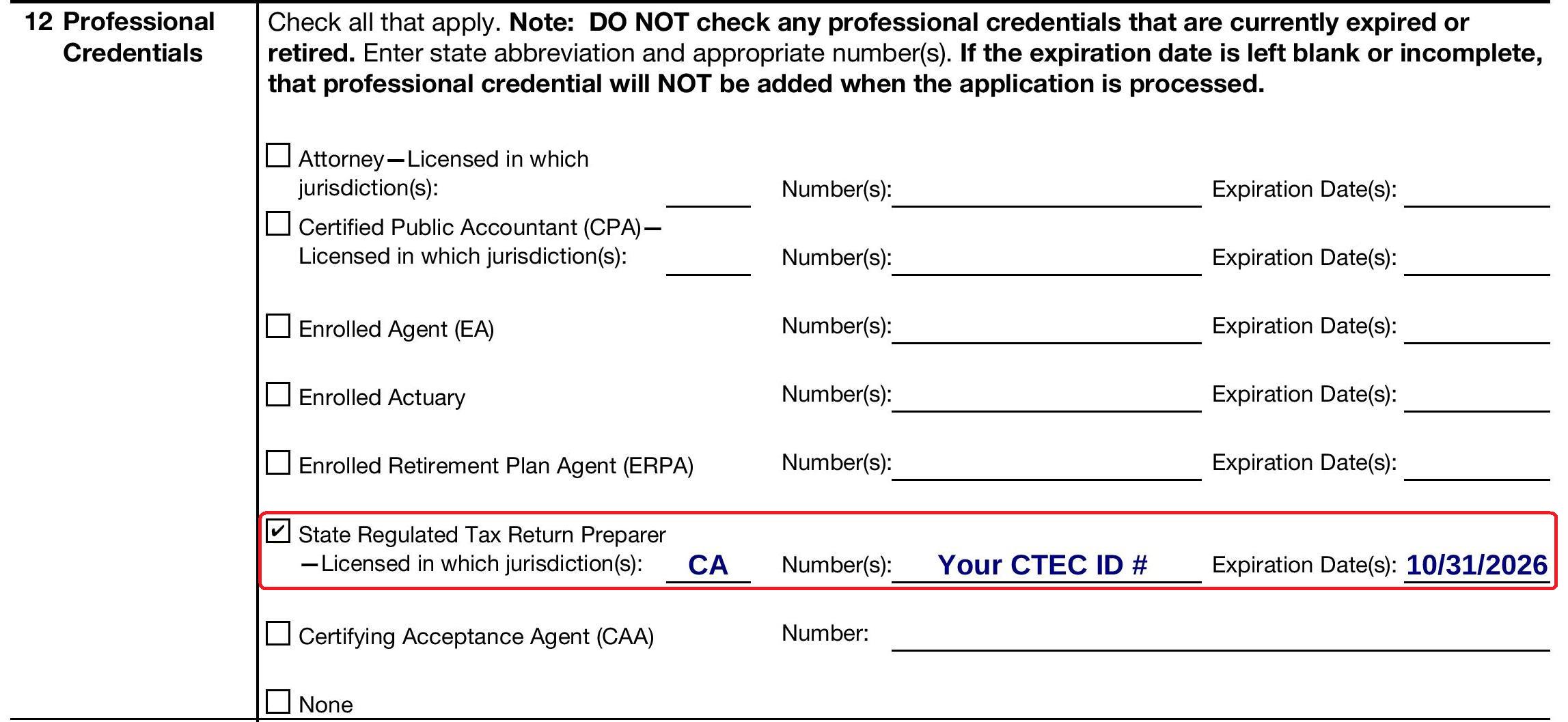 CTEC-registered tax professional (CRTP) |