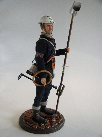 Home Front As I say Home Front are totally dedicated to depicting what happened at home in Britain and with British service men and women throughout the world during WWII. Paul's work is superb and it's not just figures and uniforms. Paul takes great care in hand crafting equipment and dioramas to enhance his final piece. The end result is detailed, fully researched, authentic and of high quality. Here's my figure. He's an ARP Warden from September 1940. He also comes with a numbered certificate to authenticate who he is and where he came from. Don't worry I'm not on any commission - I just enjoy excellent stuff and something different.