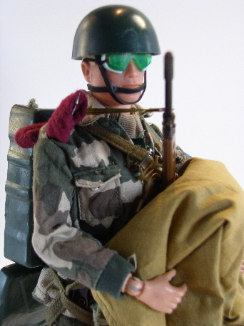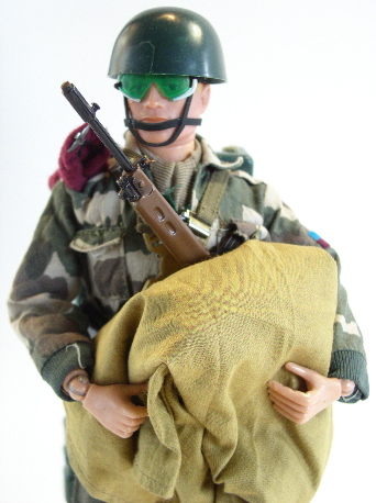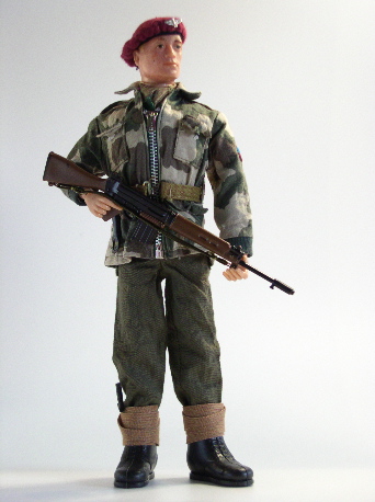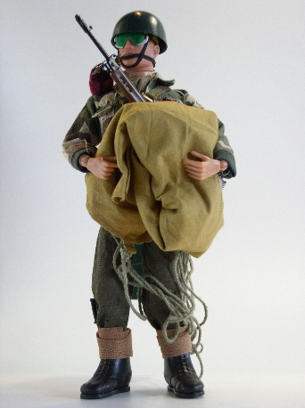 black boots (he has now got the lace-up ones). SLR Rifle (c/w muffler) and elastic