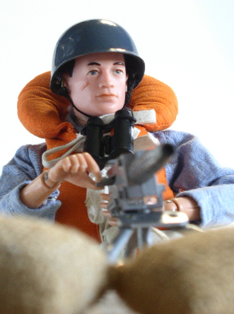 floating life belt with life line and a 30 calibre machine gun on a swivel
