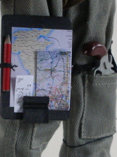 Clip board with pencil - map and notes are my own design, cloth parachute