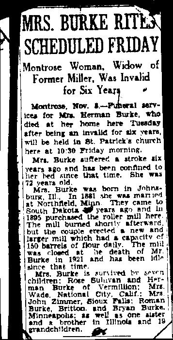 Montrose, Nov 8.- Funeral services for Mrs. Herman Berke Who died at her