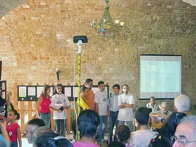 في قاعة ذات أروقة مسقوفة نصف قوسية في المدينة