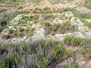 Some structures which were Built inside the wall, and the Work on them was stopped. from the same hill, up in the picture, when looking towards east We find in front of us the antiquarian  spindles . (for more pictures check the album)