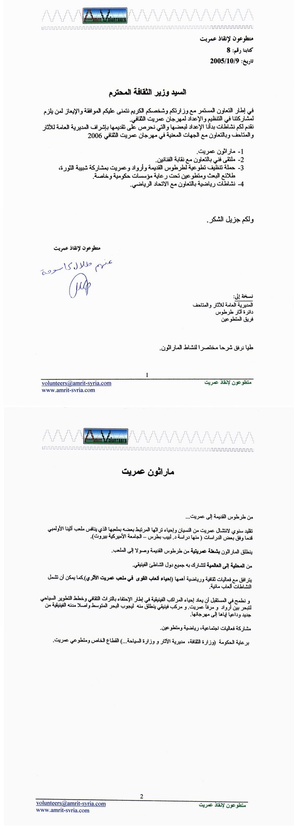 - بخصوص تنظيم مهرجان عمريت و ماراثون عمريت