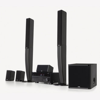 5.1 Channel Home Theater in a Box System An exciting, new home theater in a box that provides simple operation with a free Yamaha AV Controller App, plus enhanced audio capabilities with CINEMA DSP 3D for a luxurious home theater experience, a high performance 5-channel speaker system package and a powerful 6 ˝" 100W subwoofer. It also features a 115W 5-channel AV receiver and expanded Apple connectivity with AirPlay and versatile USB input for iPad compatibility. This system is also ready for the future with sophisticated technologies like 4K video pass-through, multi-language color OSD and 20% less power consumption with ECO mode.